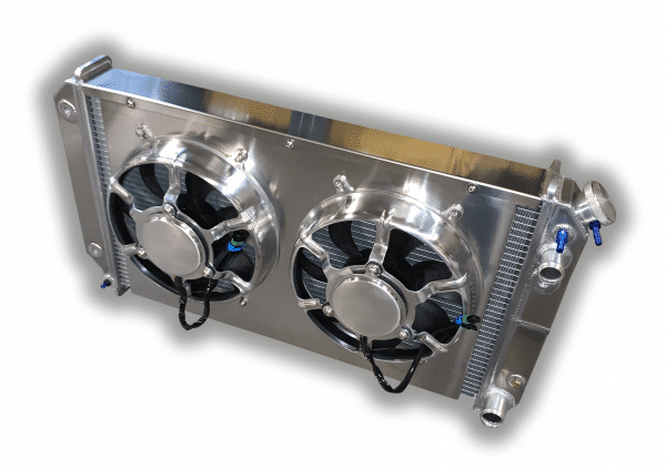 And the second benefit is because it’s a double-pass configuration, it provides an additional 20% cooling capacity over a single pass radiator. Considering LSX radiators are much more efficient than a conventional small block engine, this gives you killer cooling up to 700 horsepower and beyond without having to a core with larger tubes.