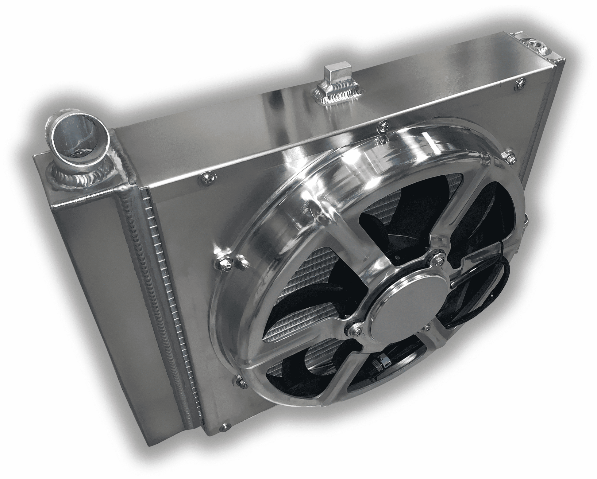 To keep your Corvette cool and worry free, we build your radiator with 2-rows of 1-1/4″ tubes and use our heavy duty 16″ 3000 CFM HPX fan. This will drop right in place of the OEM copper/brass radiator and uses the stock upper radiator hold down. Fits both with v-belt drives and serpentine drive setups with SBC. Also available for LSX swaps.