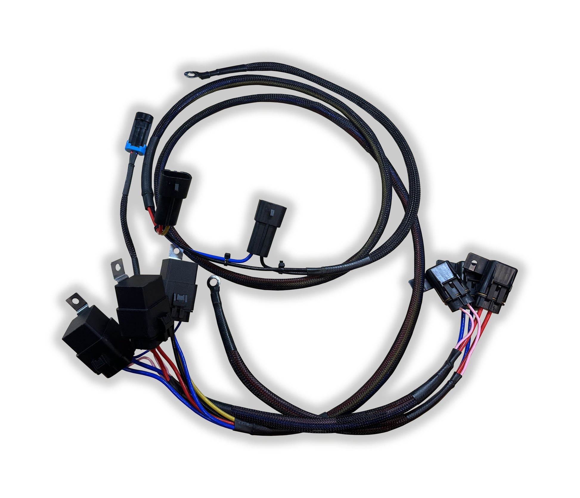 This harness is best suited for use with OEM PCMs like LSX, LTX, Holly, FAST, etc that have dual fan control built it. And control the fans by providing a ground switched control. This harness is activated by grounding the two triggers.