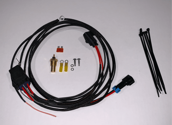 If you’ve purchased one of our radiator kits with single fans, then this is the fan harness you need to wire your new cooling fan up without headaches and reliability issues. After over 20 years of building radiators with electric cooling fans, we’ve leanred a lot about problems that can creep up in electric fan installs. The biggest problem, without question, is garbage fan wiring. It will cause you more misery than you can possibly imagine.